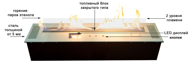 Биокамин спроектирован специально для помещений, где нет возможности установить дымоход. Даже без использовании дымоходной системы и вытяжки, от такого камина нет ни дыма, ни запаха. Он легко монтируется и прост в управлении.